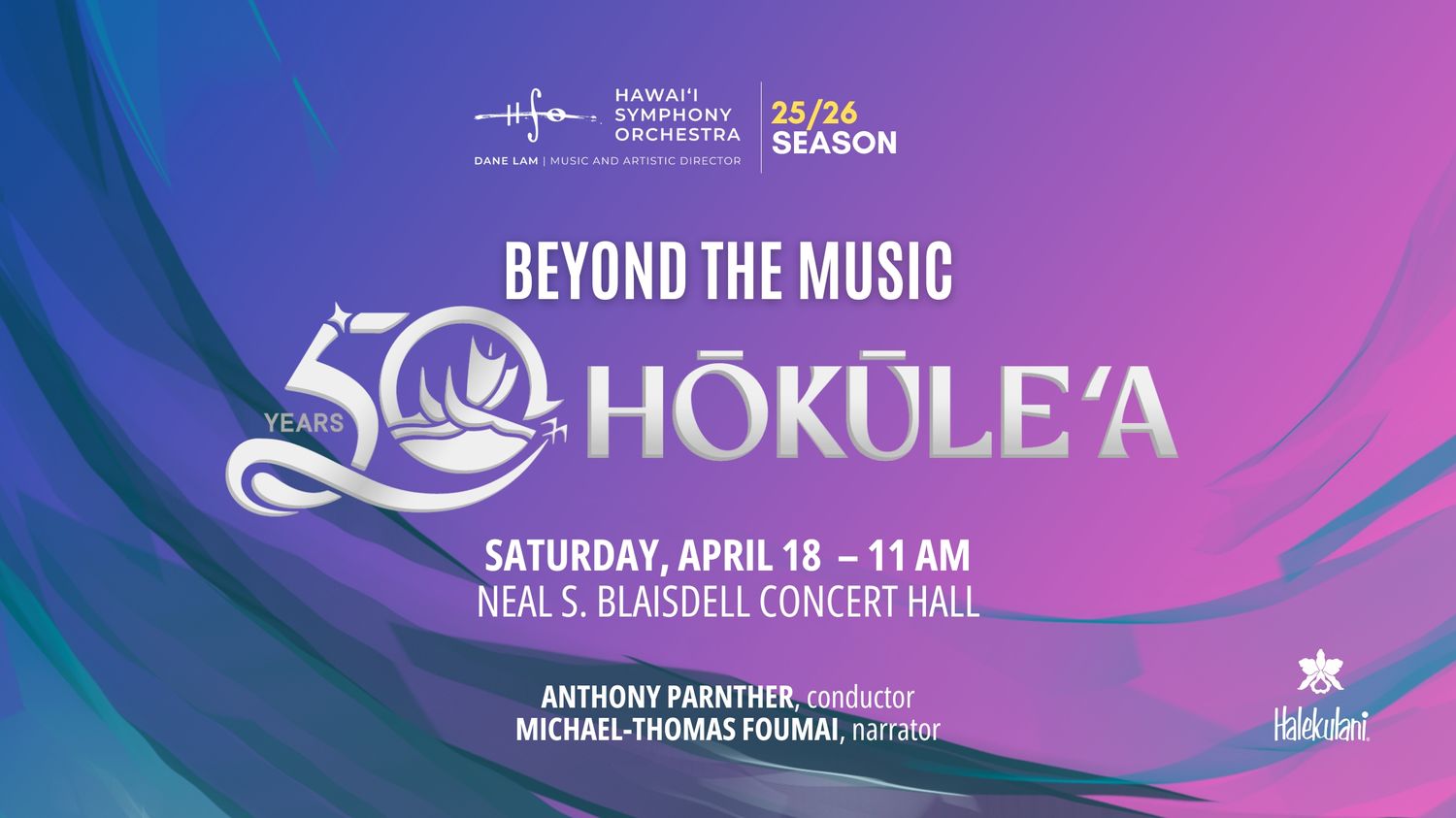 HŌKŪLEʻA 50 Beyond the Music Saturday, April 18, 2026, 11 AM Blaisdell Concert Hall Anthony Parnther, conductor Michael-Thomas Foumai, narrator FOUMAI Selections from Raise Hawaiki Bring the whole family to […]
