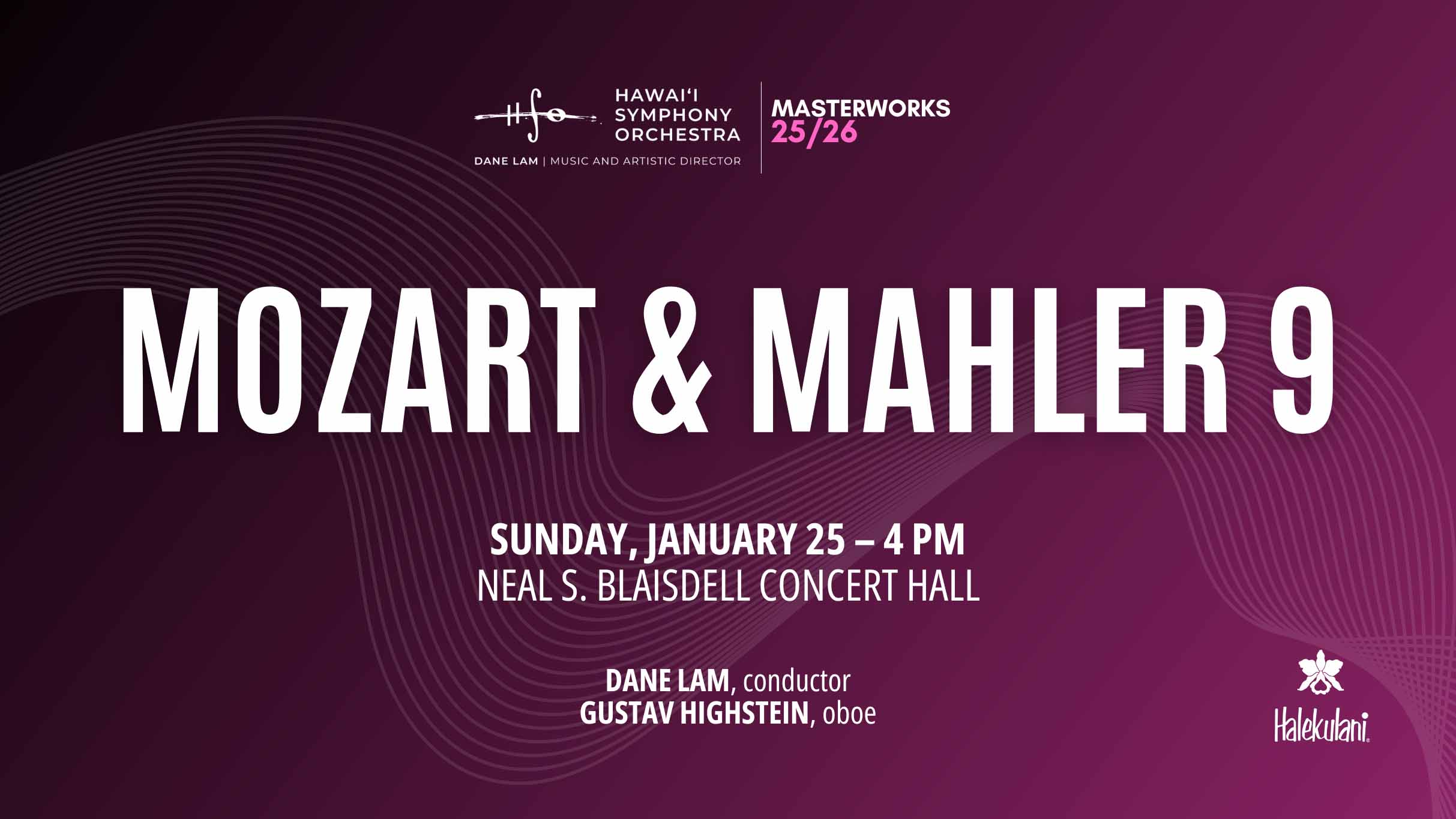 Mozart & Mahler 9 Sunday, January 25, 4:00 PM Blaisdell Concert Hall Masterworks Dane Lam, conductor Gustav Highstein, oboe Hawai’i Symphony Orchestra, 2025 MOZART Oboe Concerto in C major, K. […]