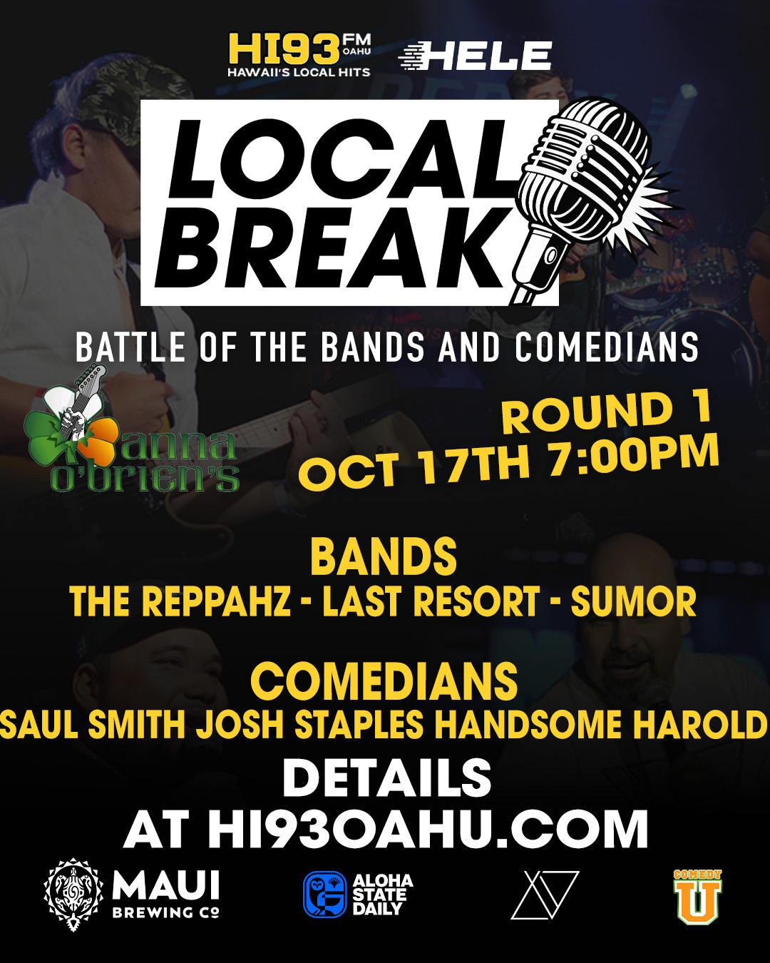 HI93 Local Break is a battle of the bands and comedians hosted by Phat Joe of HI93. Round 1 of the competition takes place on October 17th at Anna O'Brien's in Honolulu, […]