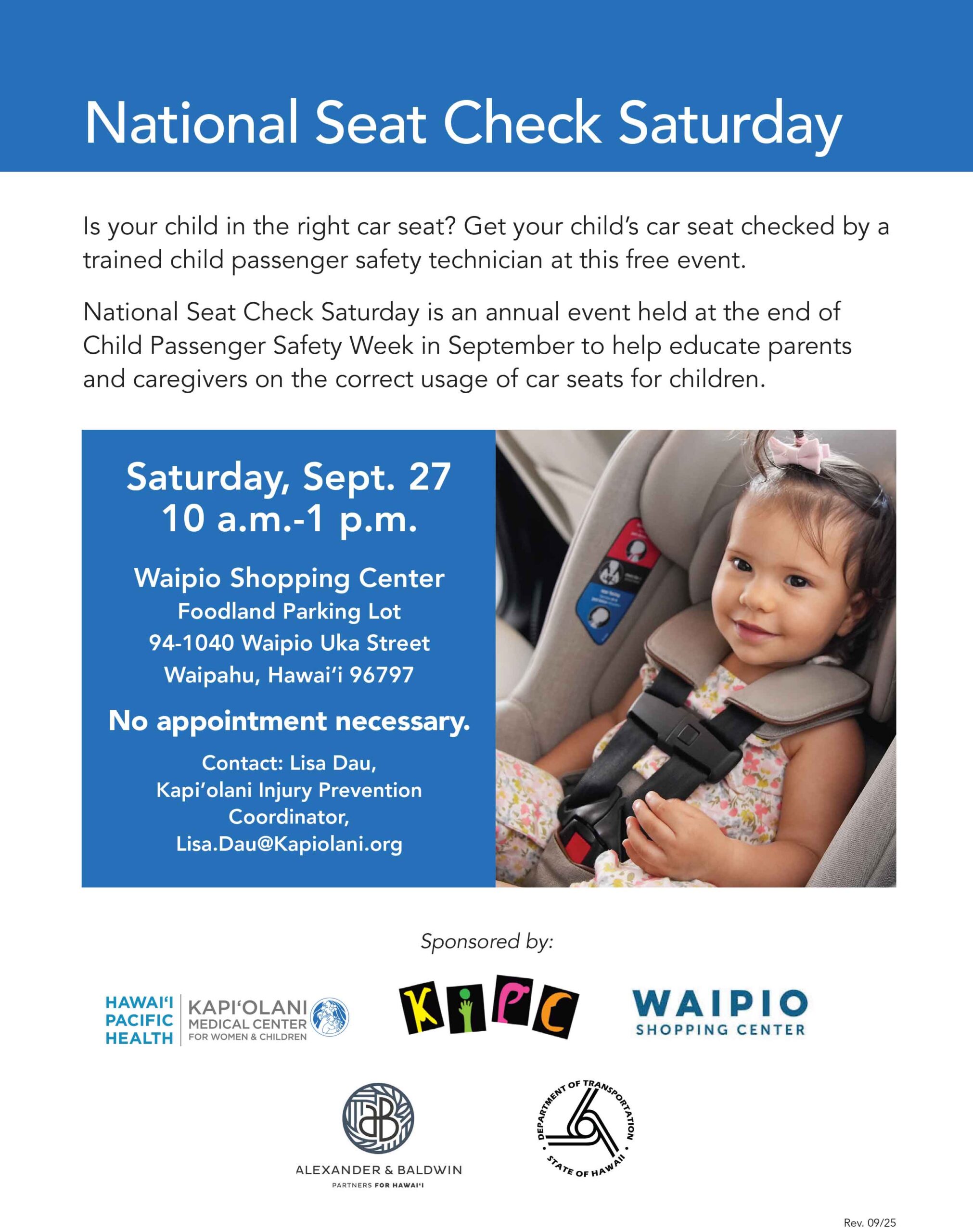 • Child Passenger Safety Seat Check at Waipio Shopping Center