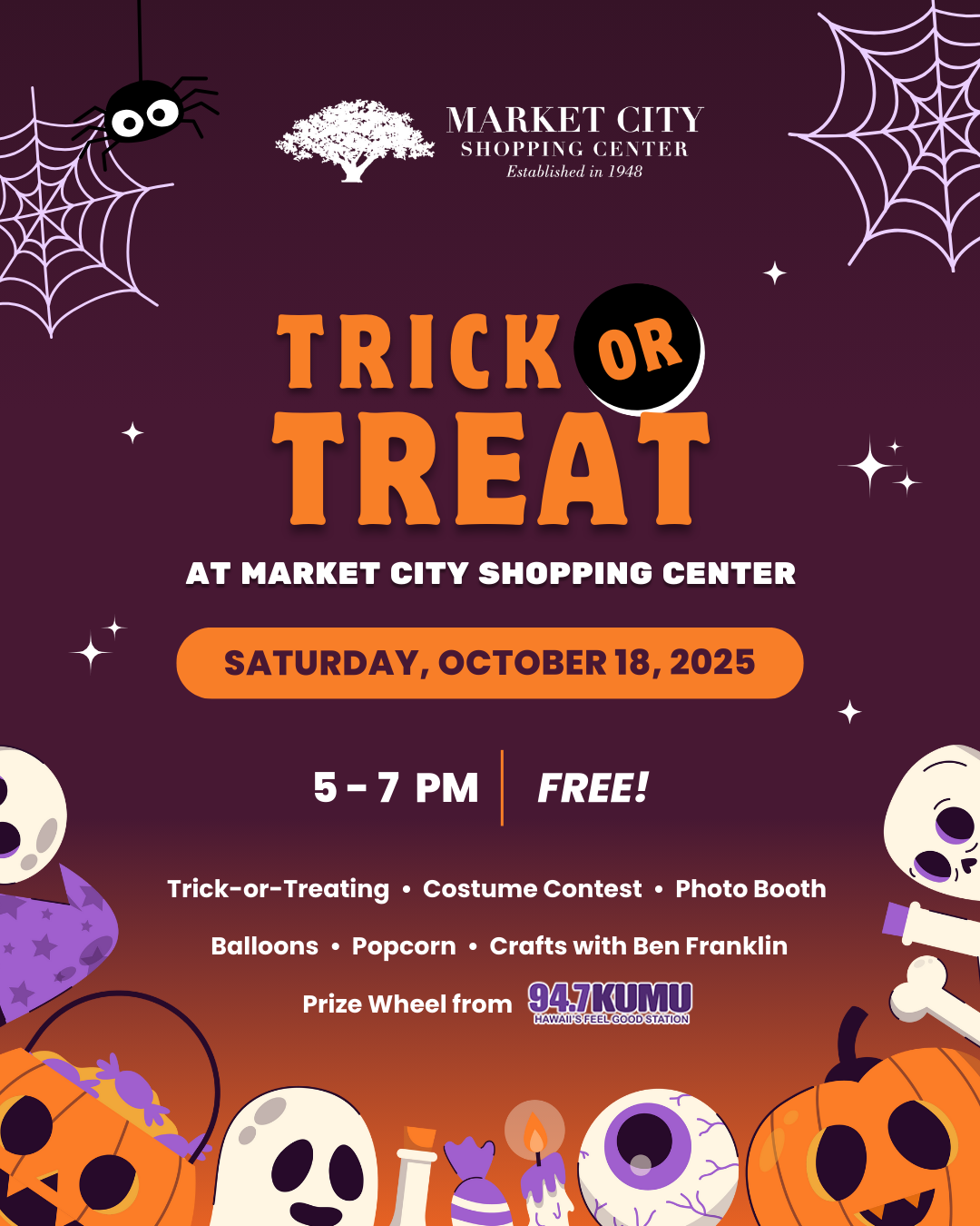 Trick-or-treating around Market City Shopping Center is just part of the family-friendly fun during our annual Halloween celebration on Saturday, October 18, 2025, from 5 to 7 p.m. In addition to the guided trick-or-treat tour with complimentary treat bag to participating merchants, there will also be a free photo booth, free popcorn, free balloons, arts […]