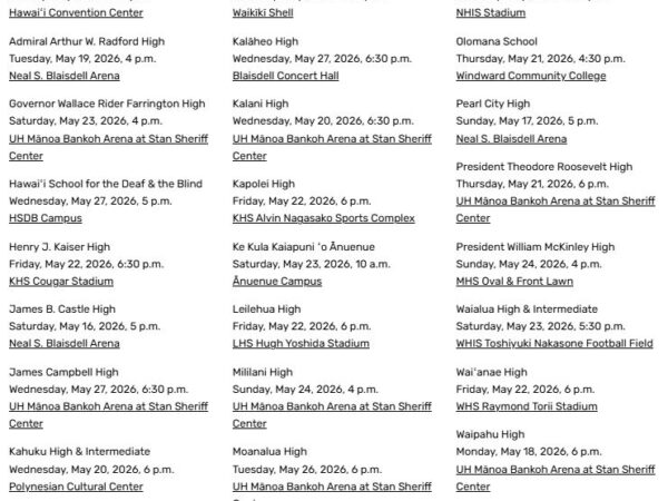 2026 Hawaii Public High School Graduation dates: